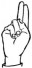 На ћирилици написано АНДРИЈАНА ПАВКОВ састоји се из 15 слова [?]. Исписано ћириличном једноручном азбуком за глувонеме: